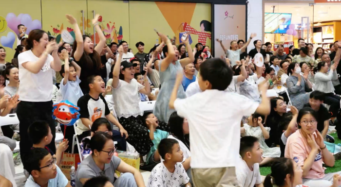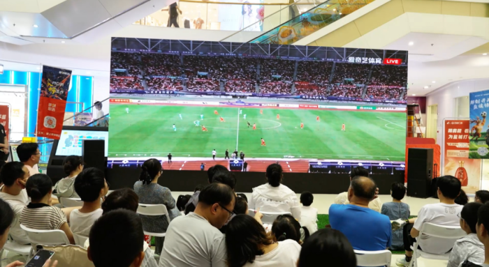 6月28日,盐都万达广场的一楼中庭化作沸腾的绿茵战场,300平方米的超清巨幕上清晰展现球员们的每一次拼抢、每一脚射门,现场座无虚席,球迷们目不转睛紧盯赛况。随着比赛进入白热化,助威声、欢呼声如浪潮翻涌,沉浸式观赛体验将赛场的热血与激情完美复刻。