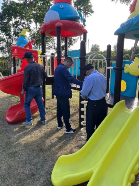 在安全会议上,公园负责人仇鹏要求,一是组织人员对园内各类设施设备进行全面的安全隐患排查;二是加强安保人员对于重点区域的巡查力度;三是做好园内设施、林木等常态化维护工作。会后,公园组织专业人员对园内供电设备、角落监控和危险警示等细节一一进行排查,组织安保人员分区、分时段地有序开展园内巡逻。同时,安排工作人员修剪道路两边树木枯枝、加固树木支撑,又增设人工湖周边警示标志5处,更换湖边救生设施2处。公园对可能出现的安全隐患,有针对性地进行排查整改,切实把安全工作落到实处,为广大市民打造了安全、文明、舒适的游园环境。