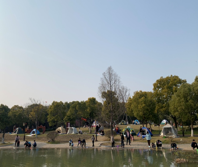 梅花怒放、玉兰含苞、杨柳吐绿、迎春绽放,无限春光引来游人如织,在公园里处处洋溢着欢声笑语,春日美景让游客流连忘返。儿童戏水区挖沙、戏水、露营、野餐等亲子游戏,处处呈现一派欢乐和睦的景象。