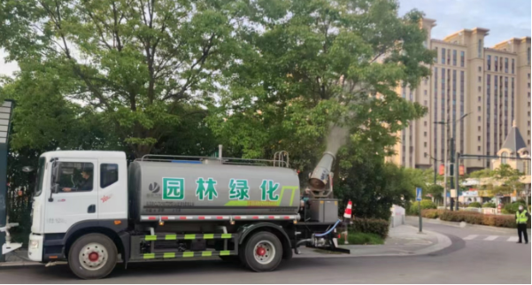 夏季是病虫害的高发期,为做到树木病虫害“早预防、早发现、早根治”,盐都园林公司紧抓防治关键窗口期,对道路两侧的重阳木、栾树、红叶李等树木喷洒杀虫药物,全力确保病虫害防治无死角、全覆盖。