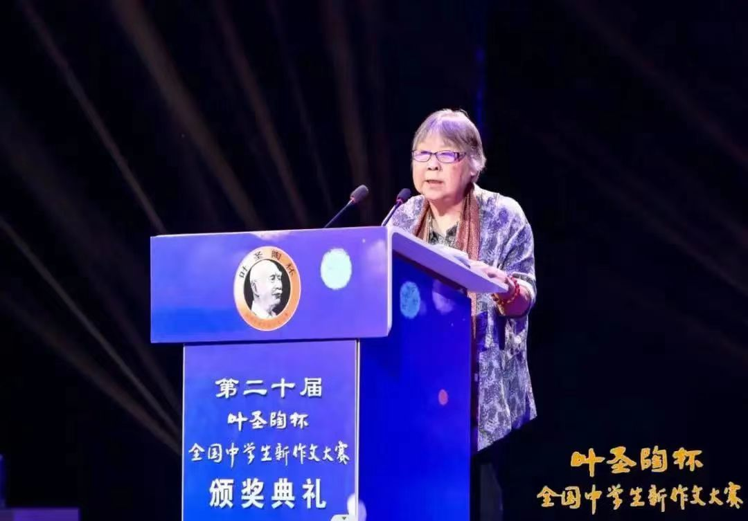 叶圣陶孙女、《中国少年报》原主编叶小沫在贺辞中回顾了叶圣陶杯大赛的举办历程,对大赛坚持举办二十届感慨万千。她饱含深情地说:“二十年来,大赛迎来了一批又一批热爱文学、热爱写作的青少年朋友;二十年里,送走了一批又一批在大赛中经过历练的优秀人才。不知道有没有人认真地想过,叶圣陶杯大赛为什么能经历风风雨雨一直走到今天?不知道有没有人认真地算过,有多少青少年朋友在大赛的鼓励和帮助下,创建了自己美好的人生,为祖国和人民作出了自己的努力?而今天的你们,是这一切的见证者,是继往开来的又一代。”她同时对盐城市支持大赛、承办颁奖典礼,对盐城草房子为青少年儿童打造梦幻般的文学家园,表达了由衷的赞叹之情。