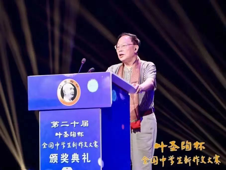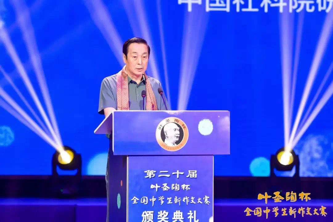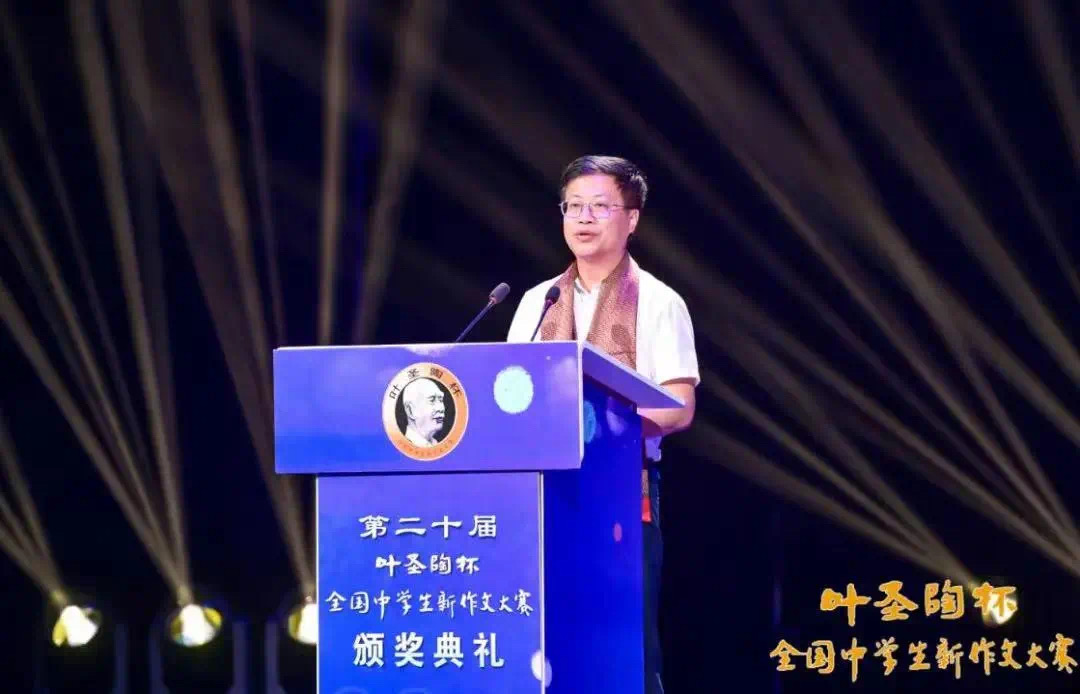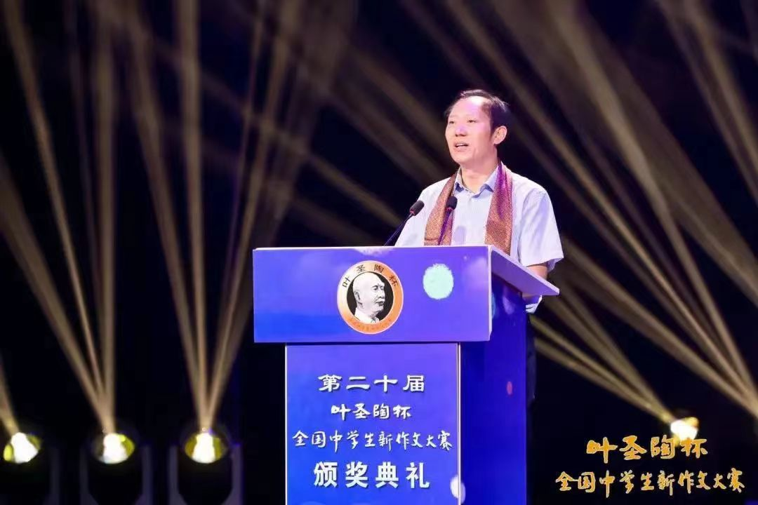 获奖学校代表、山东省临沂市第一中学校长伊永贵在发言中介绍了学校多年参加大赛的经验。他说,参赛组织过程实际就是一种教学过程,甚至比常规的课程教学具有更好的效果,通过参赛调动学生写作热情,激发学生对语文的兴趣,形成浓厚的学习氛围,能够产生大面积提高写作成绩的蝴蝶效应。同时,正如叶圣陶先生所说,“写作便是生活的本身”,热爱写作即热爱生活,这也与“以人为本,全面发展”的教育理念息息相通。他表示,期待叶圣陶杯大赛办得一届比一届好,发现与培养出更多的热爱写作、善于写作的国家栋梁之才。