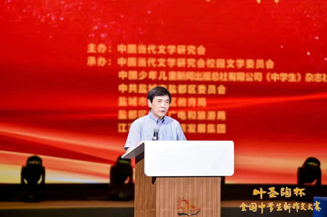 大赛组委会主任、中国当代文学研究会名誉会长、中国社科院研究员、著名文学评论家白烨在祝贺获奖师生的同时,总结了本届大赛工作,对所有支持大赛的单位表达了衷心的谢意,特别是和草房子景区的长期战略合作,给予高度评价与热切希望。他说,为更好地落实大赛的规范性和公益性,组委会根据教育部要求,修改完善了大赛章程和有关规章制度,认真组织实施,把大赛办得更加规范、更具权威性和示范性。为了保证评奖的公平公正,所聘请的评委中有鲁迅文学奖、茅盾文学奖、国家“五个一”工程奖等国家级文学奖项的评委,可以说阵容十分强大。大赛的高投入也迎来了高回报,第二十届大赛又推出了一大批具有较高写作水平的选手,在决赛中写出了很多漂亮的文章,希望参赛学校利用好大赛平台,引领同学们坚持纯正的文学情趣与追求,在未来取得更大的成绩。最后,他代表组委会宣布第二十届大赛胜利闭幕,同时宣布第二十一届大赛于八月启动。