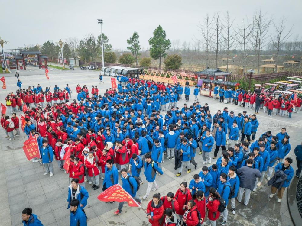 春风拂面,花香满径,九曲桥倒映水中,桃花阁雅致清幽,师生在桃源大集打卡拍照,桃花源内的景色引人驻足。板栗大道上,学生们穿行其中,时不时回头张望,蜿蜒曲折的步道、随风飘扬的班旗、漫步其中的游人,共同构成了一幅春天的美丽画卷。