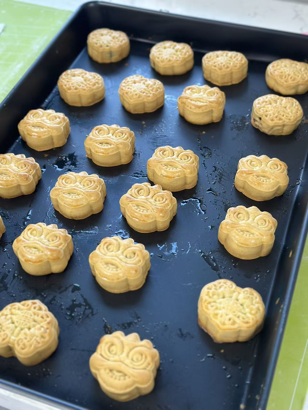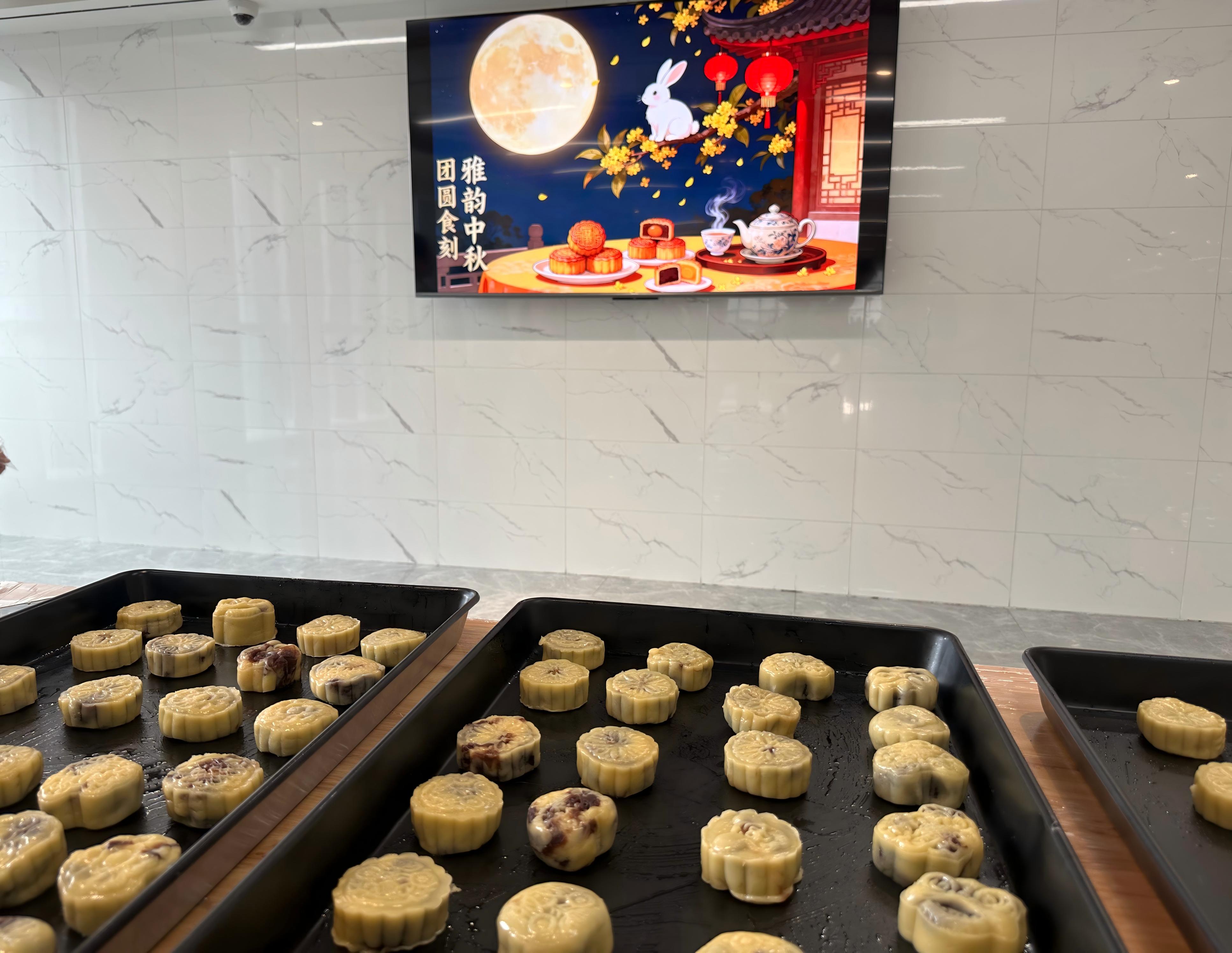 活动现场布置得温馨雅致,面团、馅料、模具等材料早已备好,各处充满了浓厚的节日气息。在面点师傅的指导下,大家兴致勃勃地投入到月饼制作中,揉搓面团、包入馅料、放入模具……同事们互相交流技巧,分享心得,一个个饱满可爱的月饼在手中成型。